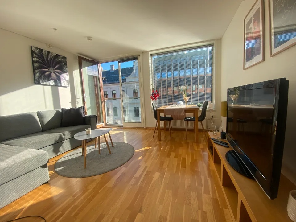 Flott MØBLERT 2 roms leilighet for leie Midt i Trondheim sentrum. Alt av hvitevarer er i leiligheten + kjøkken utstyr etc.