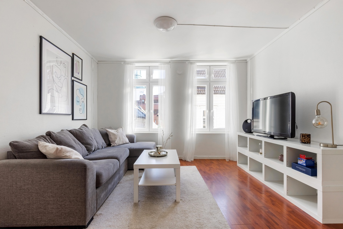 Leiligheten har høy standard, med flislagt bad, parkett på gulvene og alt av hvitevarer inkludert. Vaktmestertjenester, og alle hvitevarer er inkludert i leien. Leiligheten har perfekt beliggenhet på Nordnes og er innflyttingsklar 1. august.