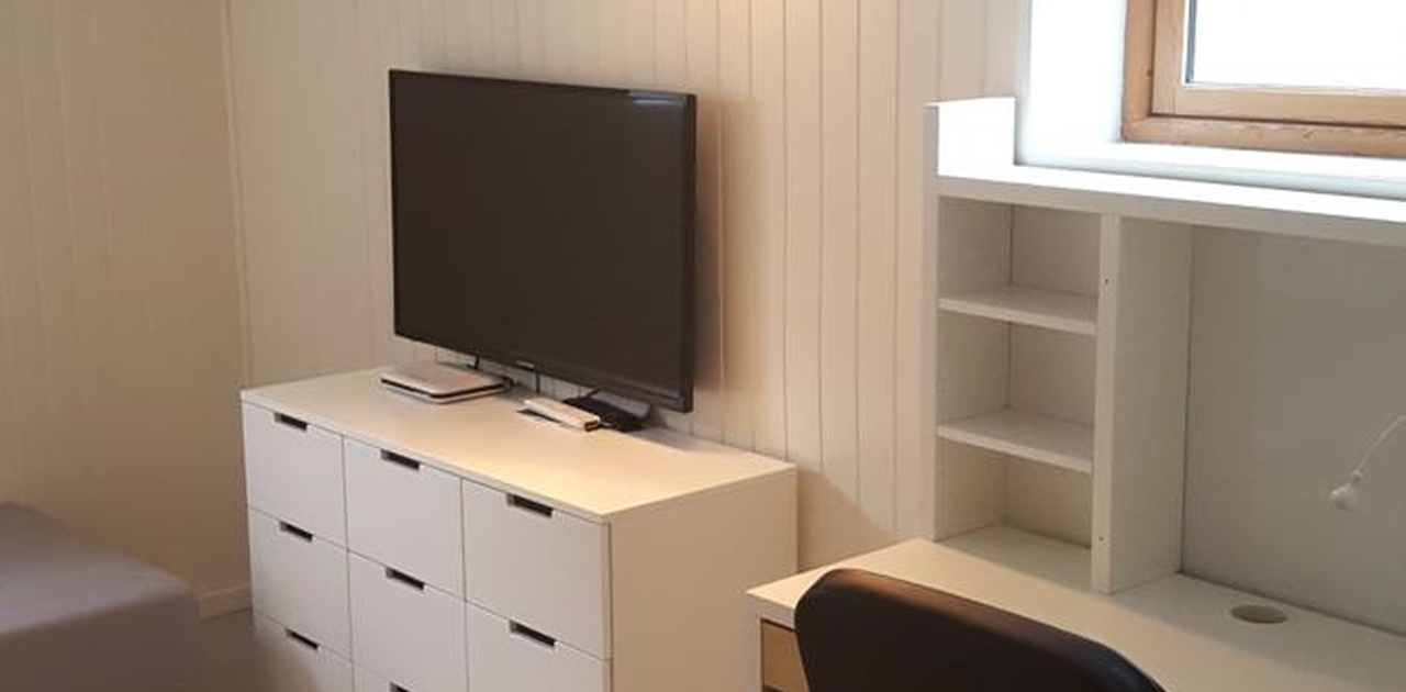 Flatskjerm 42" på alle rom med 200 Mbit internettlinje er tilgjengelig (tråd/trådløst).