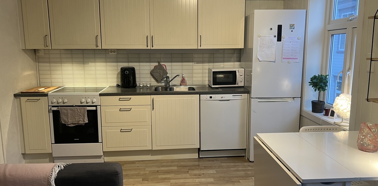 Fin leilighet til leie på Møllenberg med fire soverom over tre plan. Nye vinduer. God standard. Hvitvarer på kjøkken og kombi vaskemaskin/tørketrommel i vaskekjeller. Fra loftetasje har man utgang til terasse, gode solforhold. Attraktiv og sentrumsnær beliggenhet.