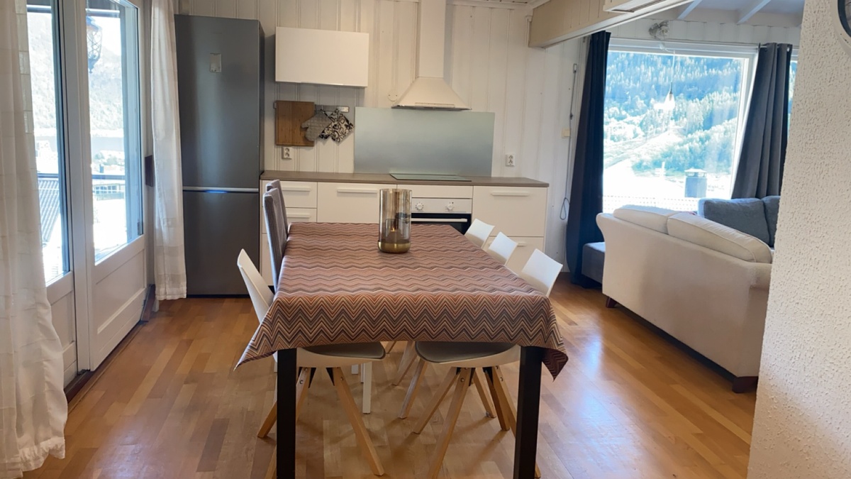 Inkludert i leien er strøm, internett, brune og hvitevarer alt av møbler og utstyr på kjøkkenet.