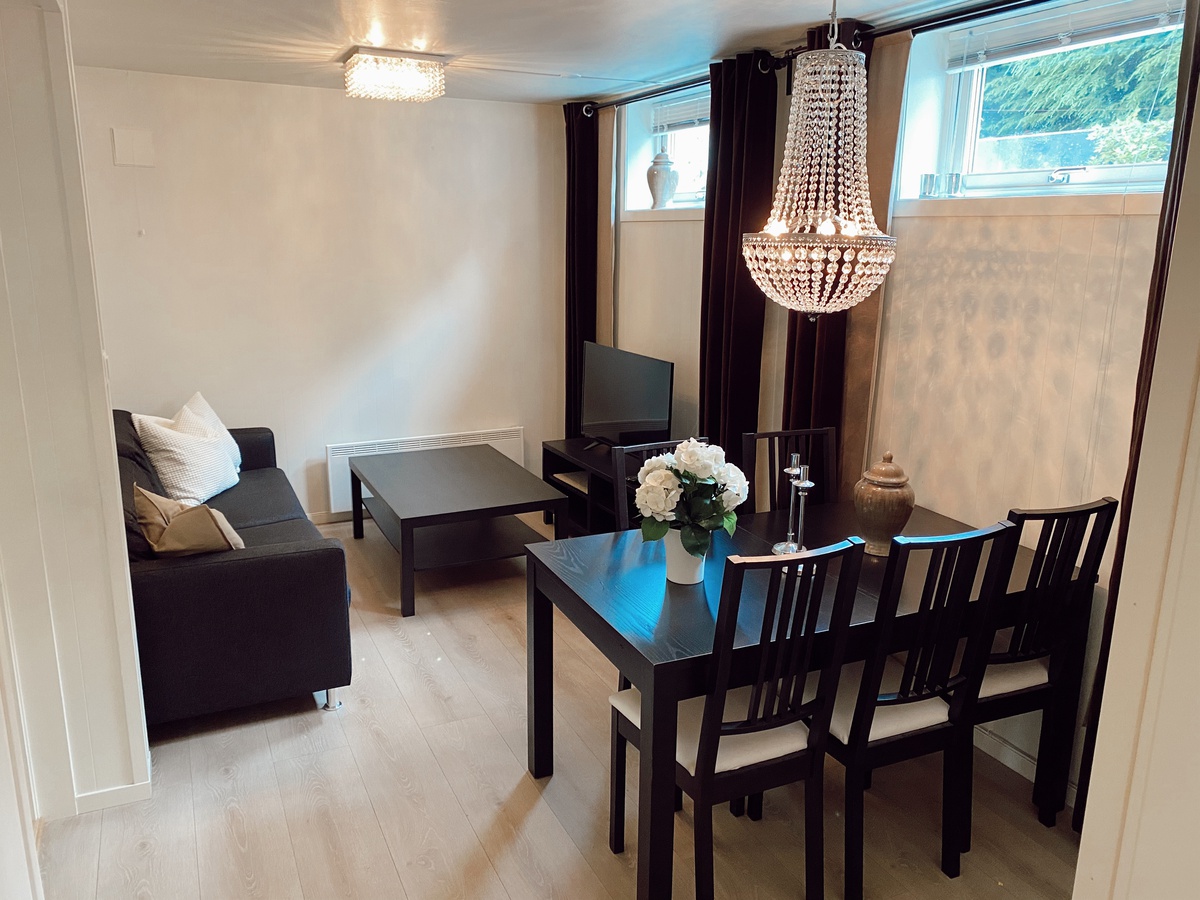Sokkelleilighet ledig, straum og fiber inkludert.