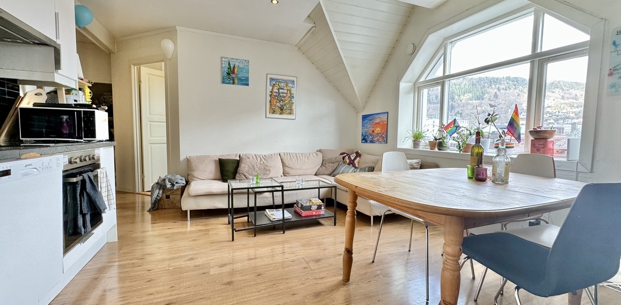 Leiligheten er plassert ved en av Bergens fineste gater, og leies ut til 6 250,- pr. rom pr. mnd. Kort vei til alt; Nordnesparken, Torgallmenningen, vågen. Dagligvarebutikk rett rundt hjørnet. Inkluderer alle hvitevarer, vaktmestertjenester og trappevask.