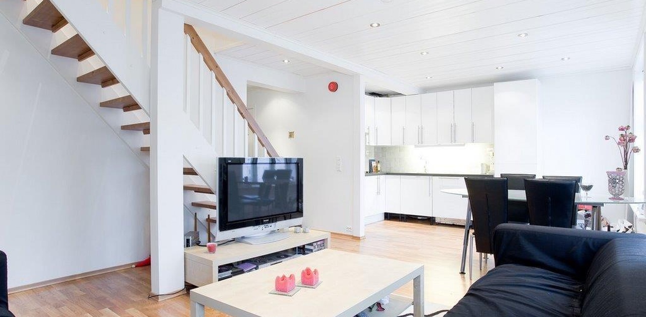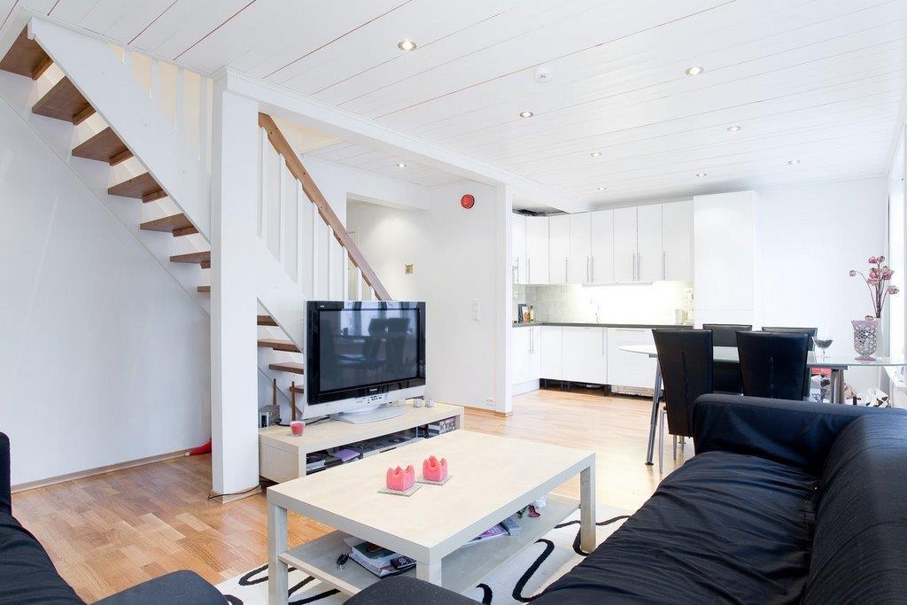 Leiligheten er møblert. Soverommet inneholder dobbeltseng, skrivepult med kontorstol, hylle og klesskap. Kjøkkenet har integrert oppvaskmaskin, kjøleskap/kombiskap, fryser, mikrobølgeovn, komfyr, kjøkkenbord og stoler og i tillegg kjøkkenutstyr i skapene. Badet i 2.etasje har vaskemaskin og tørketrommel. I stuen i 2.etasje er det sofagruppe og TV, og i 3. etasje er sofagruppe.