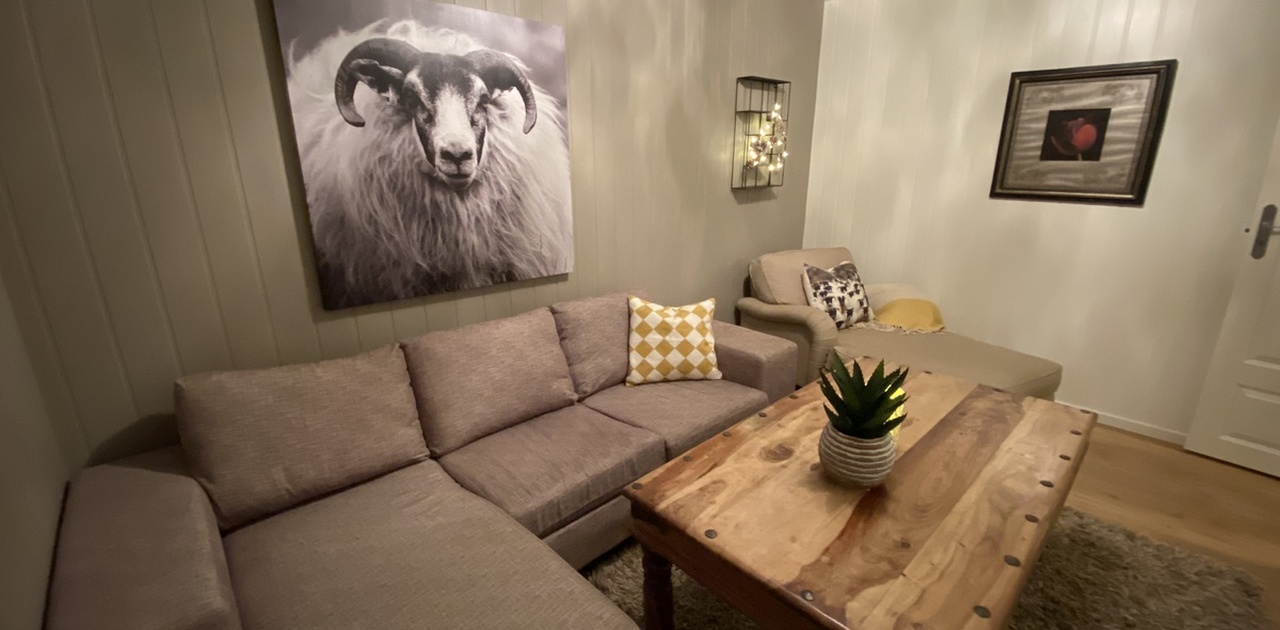 2 hybler med felles stue, bad og kjøkken. Flott bad, stue med sofa og tv og stort kjøkken. Kjøleskap, oppvaskmaskin og vaskemaskin inngår. Vannbåren varme i alle gulv samt kabel-TV og Internett inkludert i leien. 100 m til matbutikk og gangavstand til høyskolen i Molde, videregående skoler og sentrum