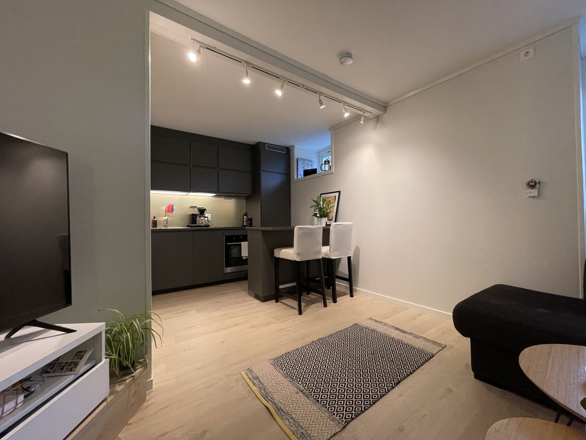 PS. Vi har ikke bilde av soverommet pga at vi har leietakere som bor der nå. Soverommet er på ca 10 kvm og har samme standard som resten av leiligheten (lyse gulv og vegger).