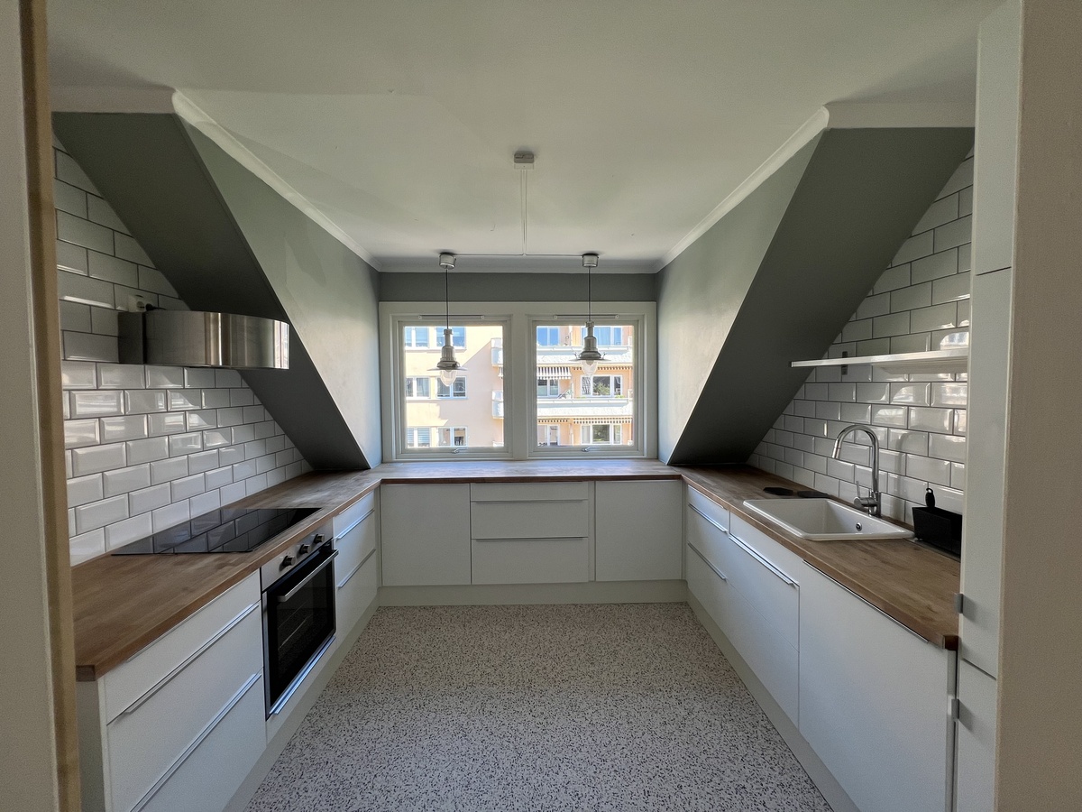 Toppleilighet til leie sentralt på Lund. Meget pen 3-roms leilighet til leie i ett bygg med 10 leiligheter. Leiligheten ligger i 3. etasje og har godt lysinnfall i alle rom. Leiligheten består av vindfang og en lang gang som har adkomst til romslig soverom, kjøkken, stue og bad. Fra stuen er det videre adkomst til et mindre soverom. Leiligheten holder en fin standard og og det er godt med skapplass. Leies ut møblert. Leien inkluderer internett og TV-kanaler fra Telia. Det er en felles hage for alle beboere i bygget som kan benyttes av leietaker. Callinganlegg. Det er gateparkering utenfor bygget, men ingen fast plass. Det er ikke heis i bygget.