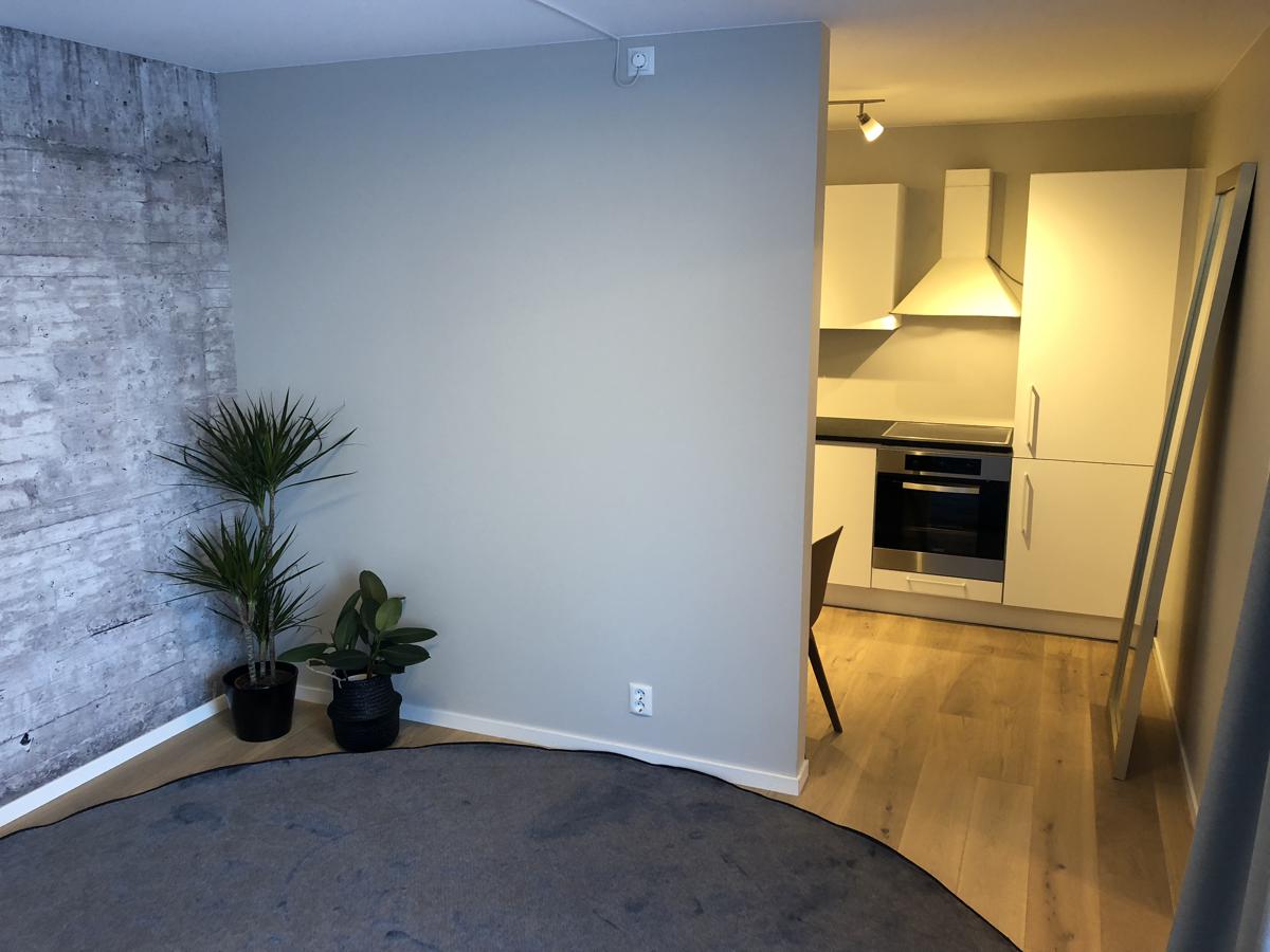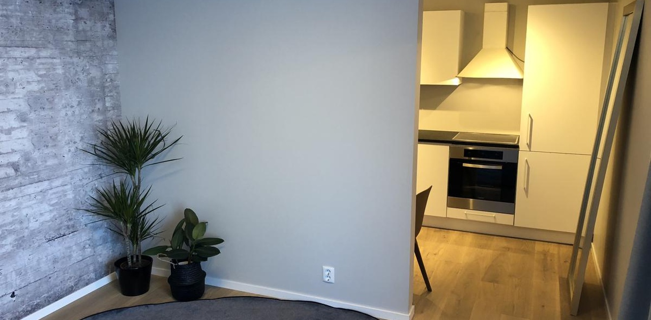 Fin hybel med egen inngang i underetasjen på enebolig.