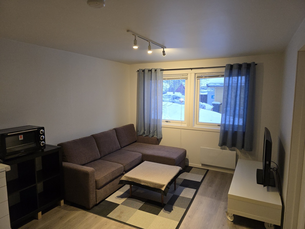 Fullt møblert hybel med strøm og internett (fiber) inkludert. Parkeringsplass med broleggingssten like ved inngangspartiet.