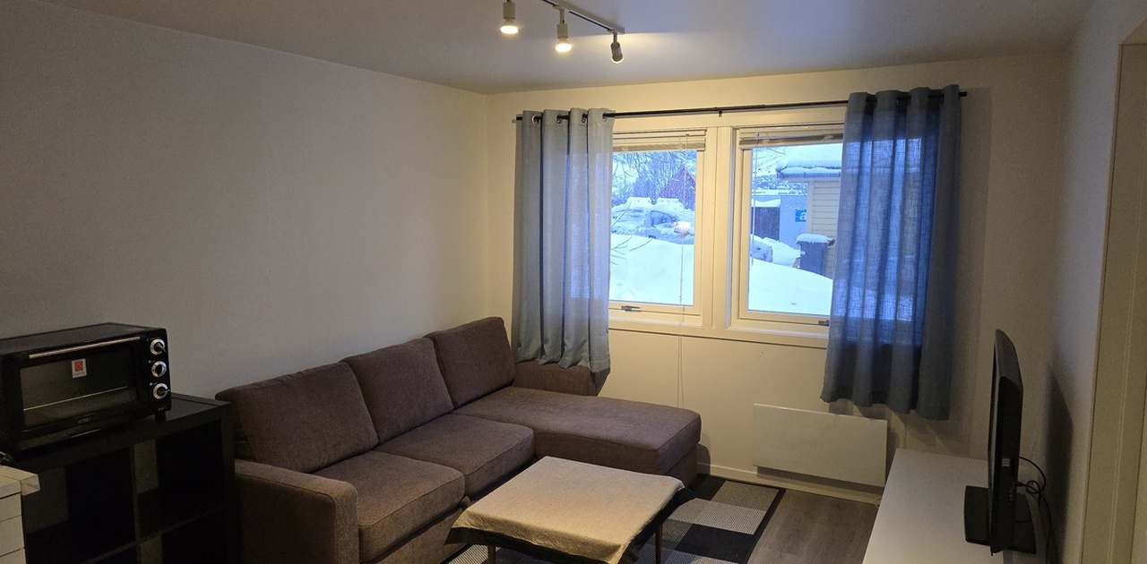 Hybelen er fullt møblert med alt en måtte trenge (unntatt sengeklær, håndklær osv.). Hybelen ble totalrenovert i 2018, som innebærer varme i gulv, balansert ventilasjon, lydisolert fra gang og andre rom, samt lydhimling mot etasjen over.