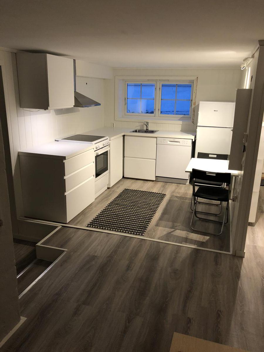 Sokkelleilighet på ca. 45 kvm med to soverom. Felles kjøkken, bad, gang og oppholdsrom. Passer fint for studenter som vil bo rolig, men i nærheten av byen.