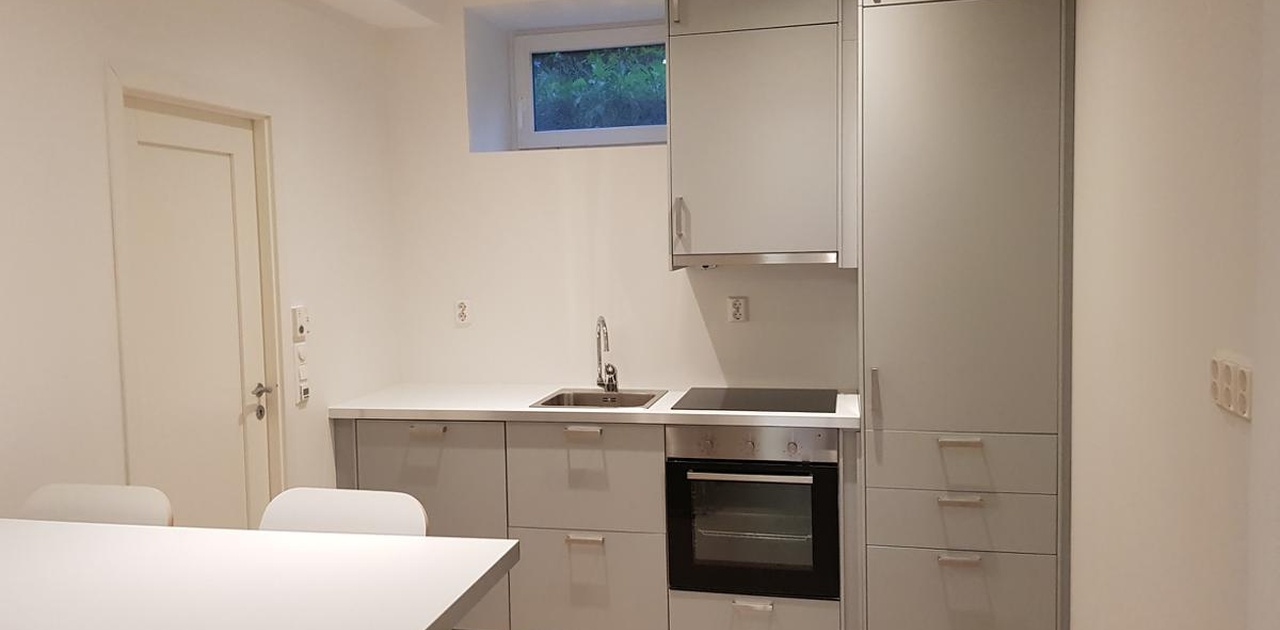 Nydelig leilighet som kommer med ferdig oppsatt skillevegg / klesskap og mulighet for flere møbler. Høy standard, balansert ventilasjon, gulvvarme, flotte overflater, etc.