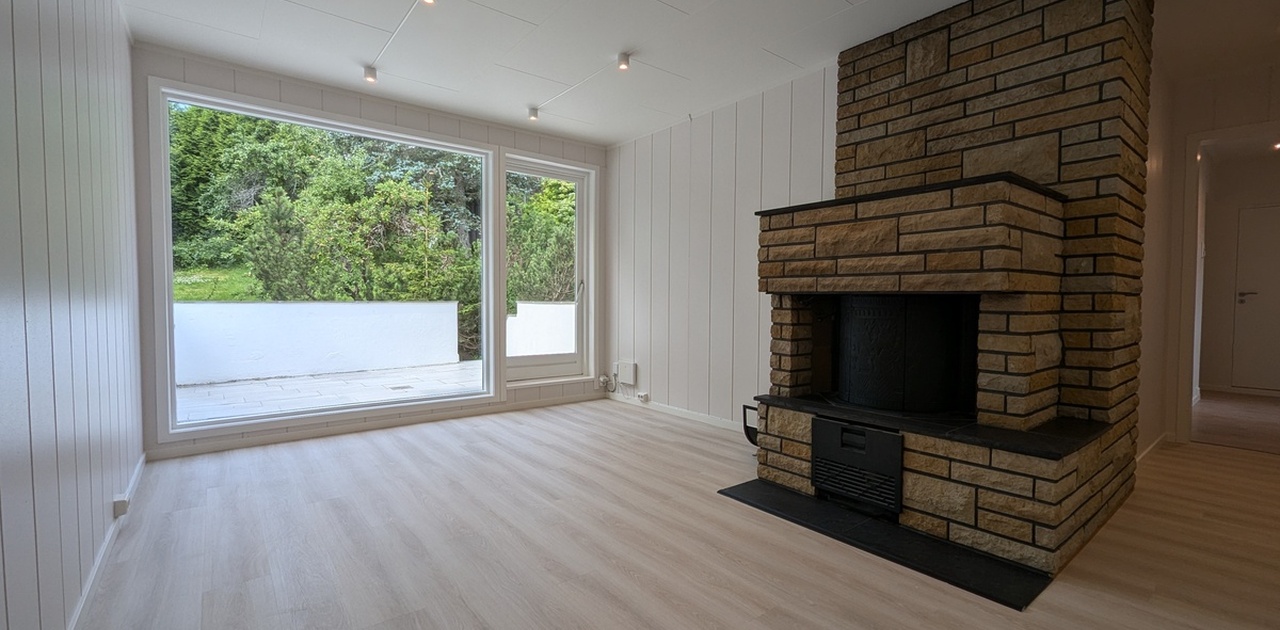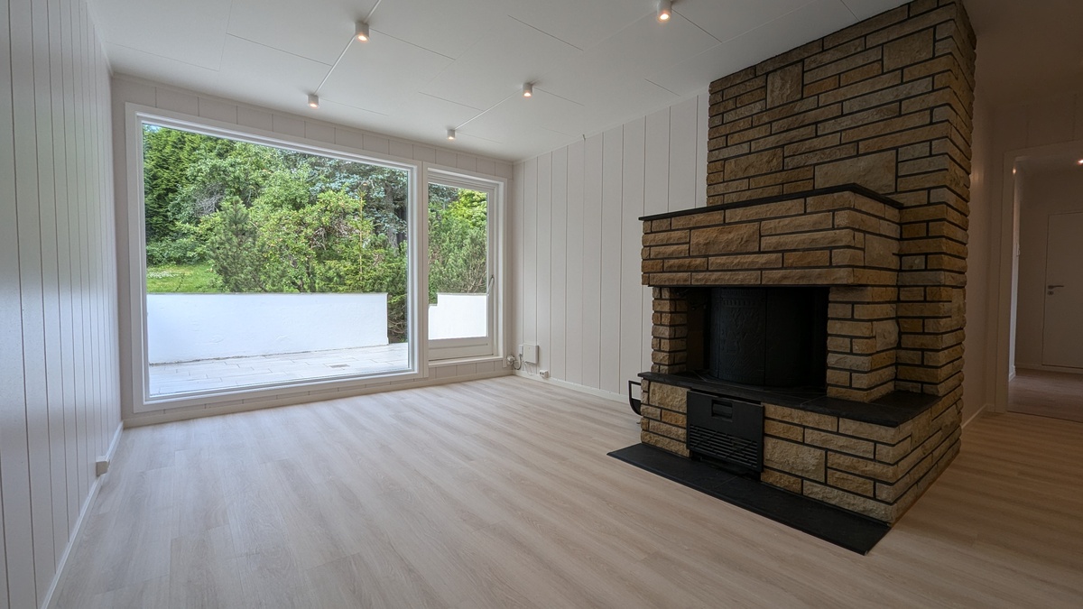 ✅ Romslig stue med peis, og gulvarme