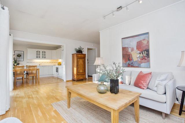 3 soverom og stor stue m/kjøkken, stort flislagt bad med varmekabel. (Møblene fraviker noe fra bildene).