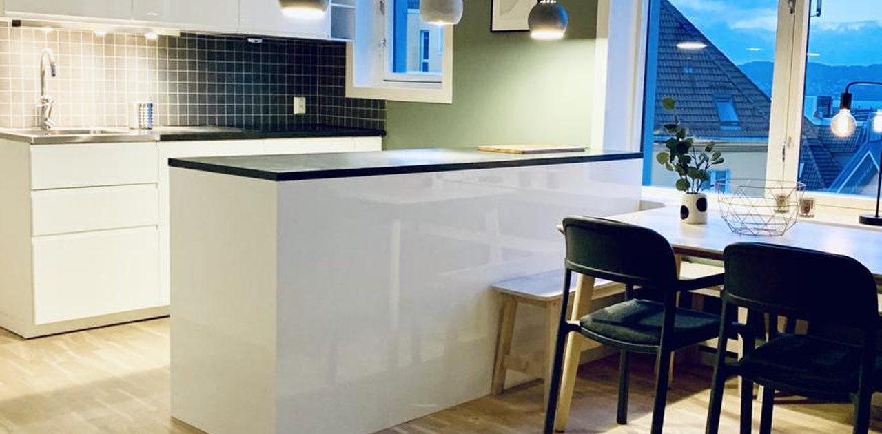 Oppusset leilighet på 93m2 i hjertet av Sandviken (del av Bergen Sentrum) med 4 soverom, stue, kjøkken og bad. Fullt møblert med nye møbler. Størrelse på soverommene varierer fra 15m2 til ca 10,7m2. Husleien pr mnd er 32400kr. Depositum er 3 mnds husleie. Strøm og internett er ikke inkludert i leieprisen. Lys og moderne leilighet med utsikt, 5min unna Bryggen til fots. Flott og sentral beliggenhet i en koselig, rolig gate med masse turmuligheter rett i nærheten (bla Fløyen og Sandviksfjellet). Kollektiv transport er også ikke langt unna samt dagligvarebutikker, apotek og Støletorget.