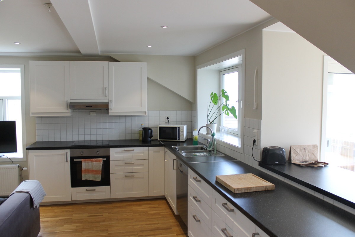 Bygget er totalrenovert i 2017 og leiligheten leies ut med ny komfyr, oppvaskmaskin og kombiskap. Møblene på bildene følger ikke med.