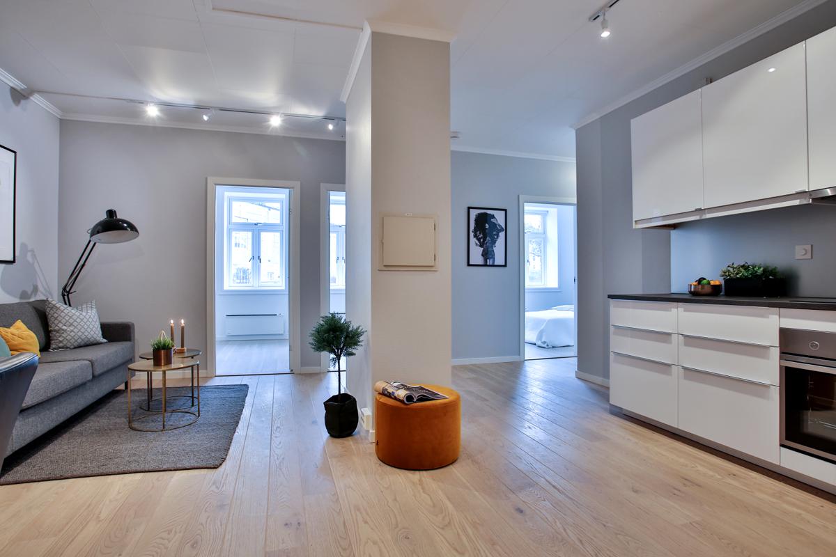 Dette er nydelig nyoppusset leilighet som ligger attraktivt til i populære Mellomveien. Leiligheten er lys og luftig, med god takhøyde, og oppleves som lekker og moderne. Leiligheten inneholder 4 store soverom med god plass til seng, skap og pult, nytt kjøkken med kjøleskap, oppvaskmaskin, steketopp og stekeovn, samt stue med god plass til sofa og spisebord, en stor entre med mye oppbevaringsplass, og nytt bad med dusjkabinett og opplegg til vaskemaskin.