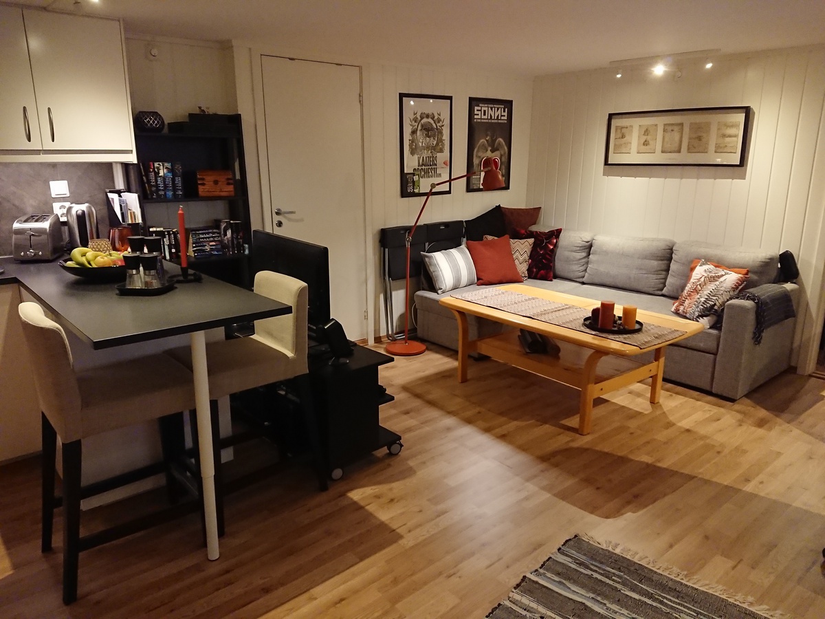 Stue/kjøkken og bad med gulvvarme.