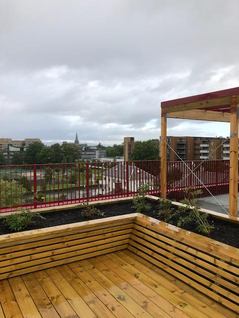 Leiligheten ligger i 3. etasje med fransk balkong og tilgang til stor solrik, felles takterrasse med flott utsikt. Sykkelparkering i kjeller og på gateplan.