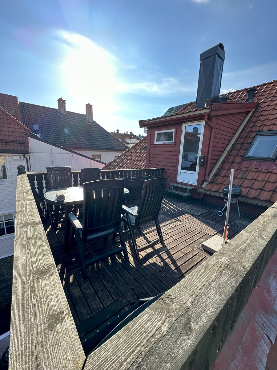 Koselig liten leilighet i Bergen sentrum med kort vei til Universitetet, BI og Bybanen. Flott sydvendt takterrasse med sol fra morgen til kveld.