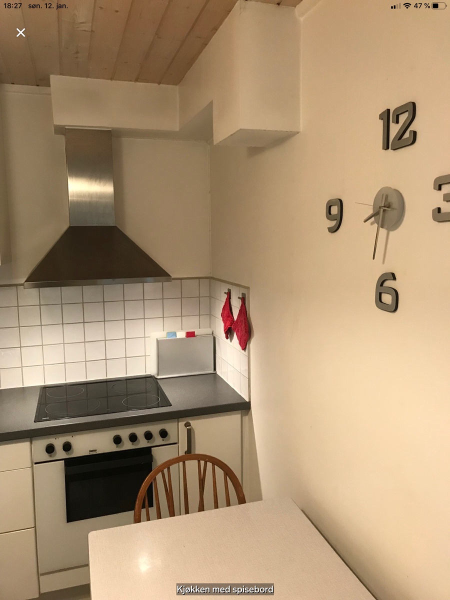 Short summary in English: Large one bedroom apartment, with separate kitchen and bathroom with washer, own entrance, underfloor heating in all rooms. Lots of light and in mint condition. Five minutes walk to subway, 1500 mtr to Oslo University and more. Very quiet and safe neighborhood with easy access to both city and the woods. No pets and smokers please!