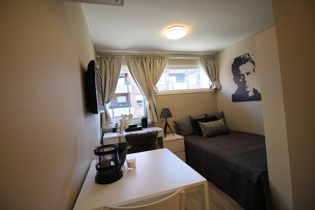 Her bor man veldig sentralt med ALT ( strøm, internett, Tv, møbler, oppvarming) inkludert i egen leilighet til en rimelig leie.