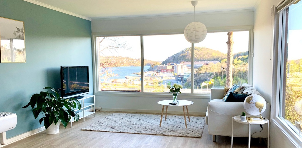 - Stue med nydelig sjøutsikt over Topdalsfjorden, Sømslandet og Vige.