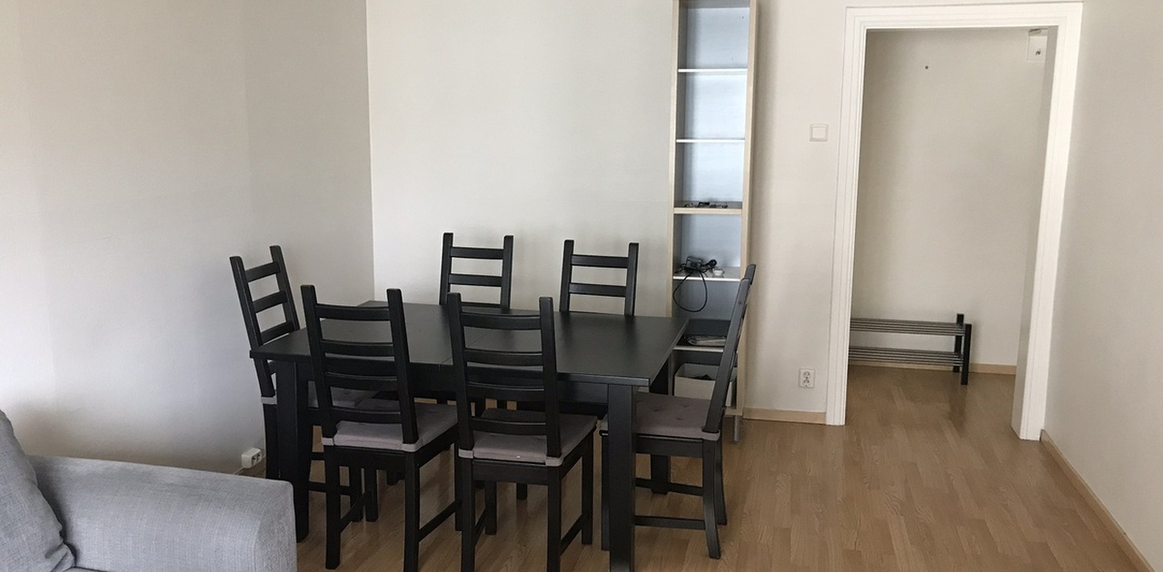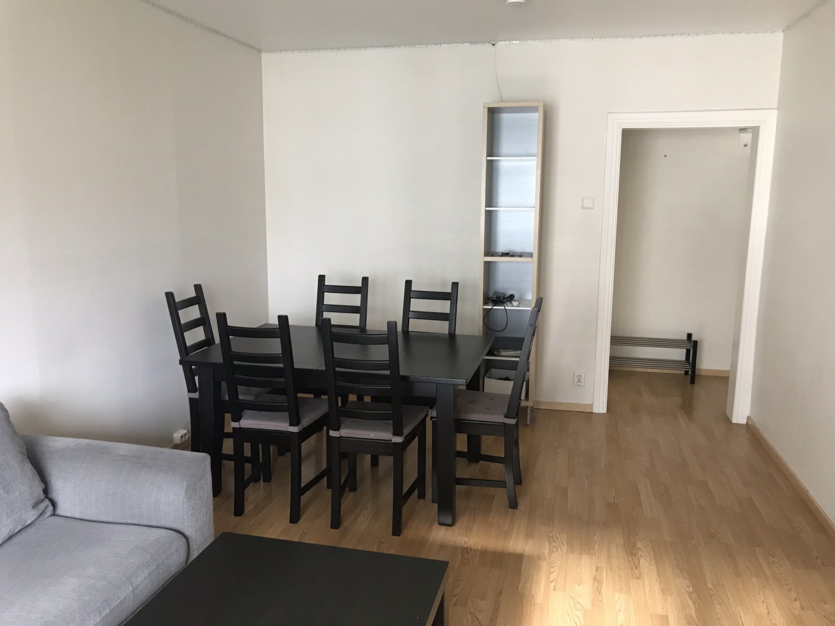 Leiligheten på 56 m3 har 2 soverom, eget kjøkken, bad, toalettrom, gang og en romslig stue. Den er delvis møblert med komfyr, oppvaskmaskin, vaskemaskin, kjøleskap, støvsuger, kommoder, skrivebord, senger, sofa og spisestue. Egen innboliste vil bli vedlagt kontrakt.