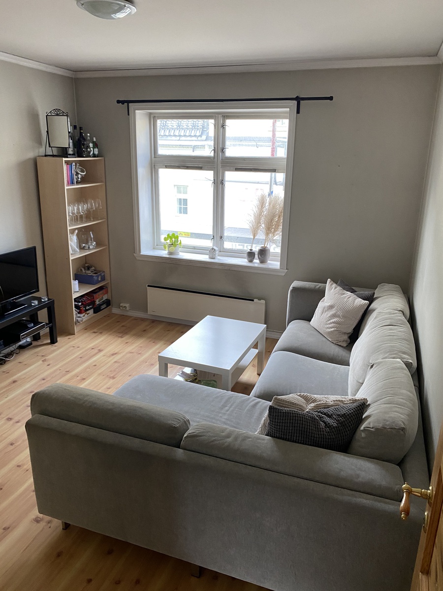 Leiligheten er umøblert, bortsett fra sofa’en + en seng tilhører leiligheten