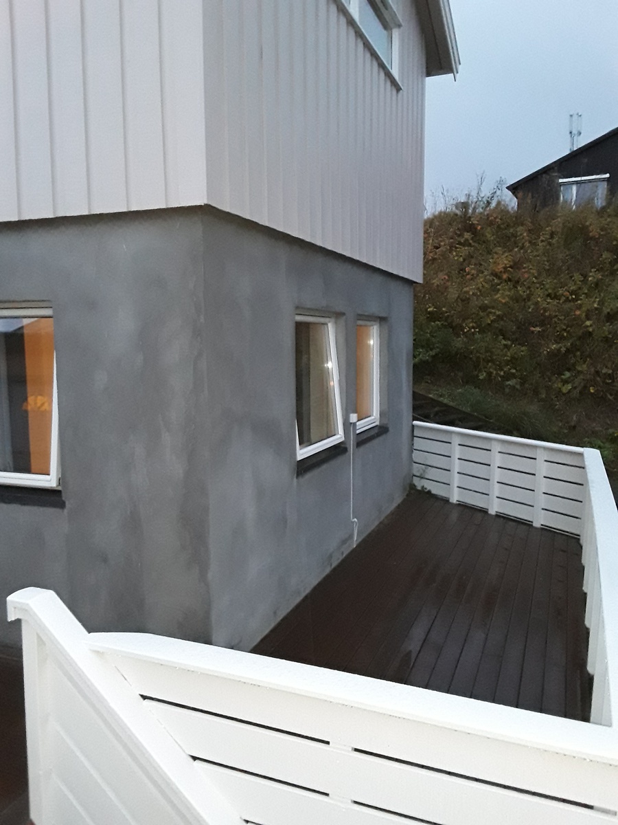 Liten, lys og fin sokkelleilighet med terrasse i frittstående garasje med kjempefin utsikt for utleie.
