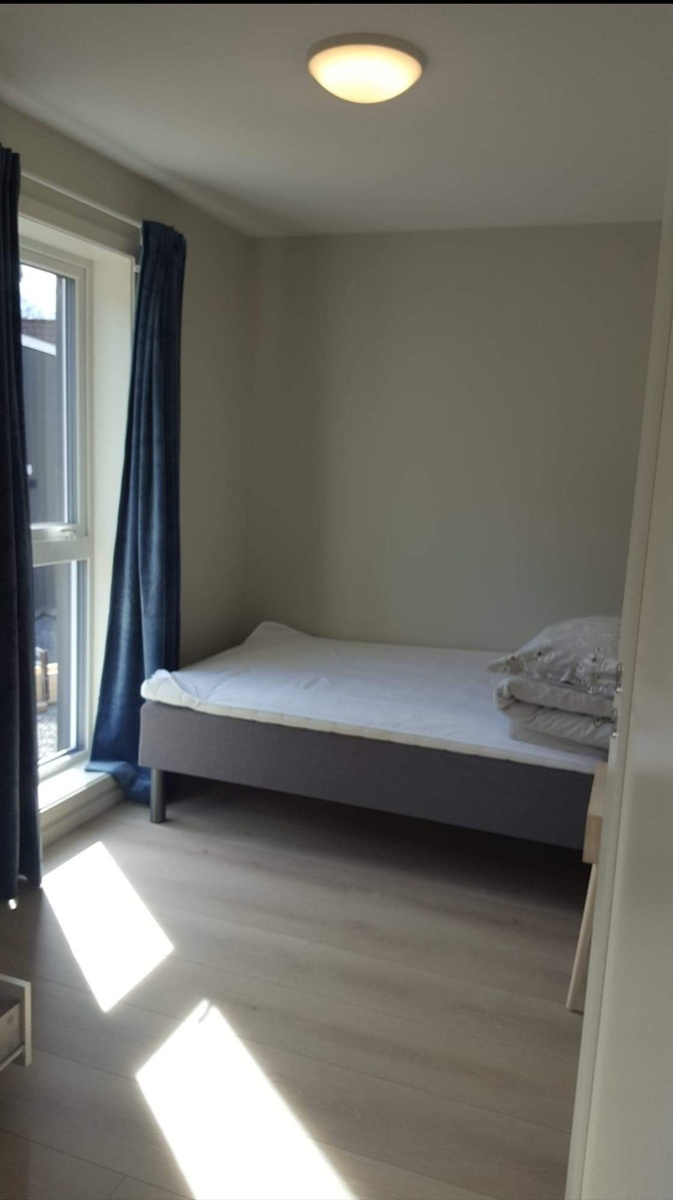 Leilighet til leige i nytt hus frå 2020, i gåavstand fra høgskulen. Bybuss under eitt minutt unna, avgang en gang i timen. Vannboren varme i alle gulv. Fliser på bad og gang. Passer best for 1 person, då kan eine rommet kan nyttast til stue.