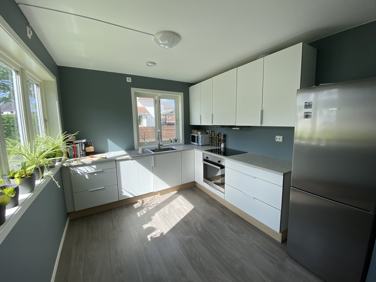 Huset er totalrenovert og ble ferdigstilt mai 2020.