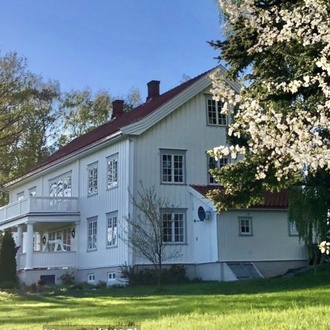Huset ligger landlig på gårdstunet til en av områdets storgårder med utsikt over Hamar og Mjøsa. Her er det rolig og fredelig.