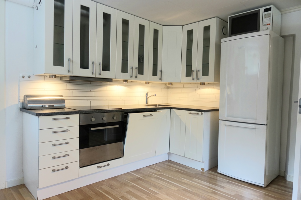 Oppvaskmaskin. Kjøl/frys. Adgang vaskerom med vaskemaskin, tørketrommel og tørkemuligheter.