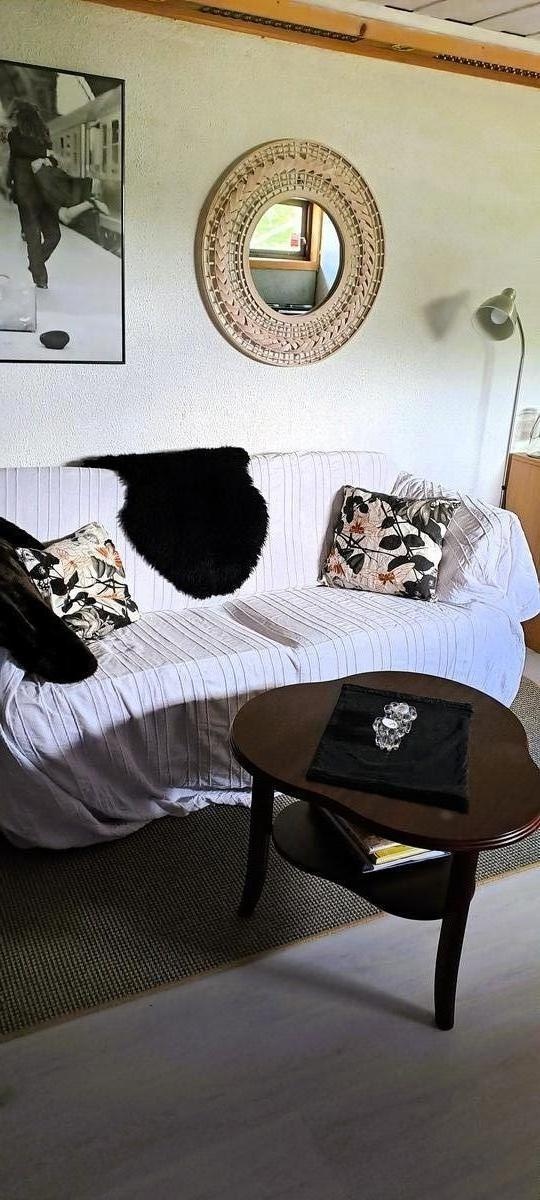 Den er fullt møblert med hvitevarer, kjøkkenting, håndklær, sengesett etc. Det er bare å flytte inn med klær og toalettsaker ! Eget bad med dusj. Hybelen er lys og fin. Det er selvfølgelig kokemuligheter og stort kjøleskap i hybelen og vaskemaskin deler du med meg.