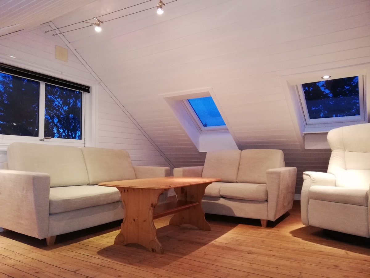 Dette er en koselig loftsleilighet sentralt i Tromsø. Det er kort vei til både sentrum og lysløype. Hybelen har registrert bruksareal på 19m2 med takhøyde 190 cm og over, dette skyldes at skråtak går til null, men har et praktisk bruksareal på 46 m2 og total golvareal på 60m2. Så det er god plass til lagring og overnatting. Det er to sovealkover, en i inngangspartiet i etg. under loftet og en oppe på loftet. Hybelen er møblert og internett er inkludert. Parkering kan leies på Alfheim Stadion