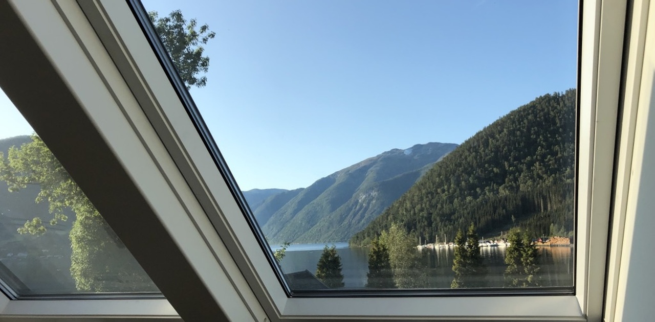 3 roms leilighet til leie i 2 etasje i hus på nedre Kaupanger. Leiligheten har utsikt mot fjorden og et stort takvindu som kan åpnes som veranda. Leiligheten består av to soverom og stue og kjøkken i ett. Vaskerom deles med 1ste etasje. Egen parkering og muligheter for bruk av hage. Det er bademuligheter og mulighet for å sette ut kajakk.