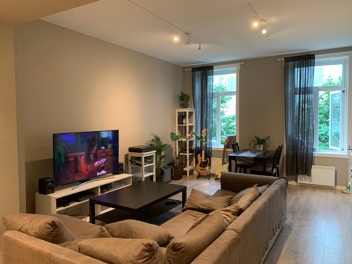 Leiligheten ble totalrenovert i 2018 og kollektivet vårt var de første som flyttet inn. Leiligheten har åpen stue- og kjøkkenløsning, bad og et ekstra toalett i tillegg til fire soverom. Kollektivet disponerer en stor bod i kjelleren. Leiligheten har både vaskemaskin og oppvaskmaskin.