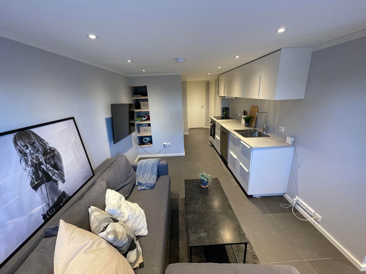 Hybelen er ferdig totalrenovert den 21 juni 2021. Hybelen er på et plan, og har varmekabler i alle gulv. Den består av to soverom, et bad og kombinert stue og kjøkken.