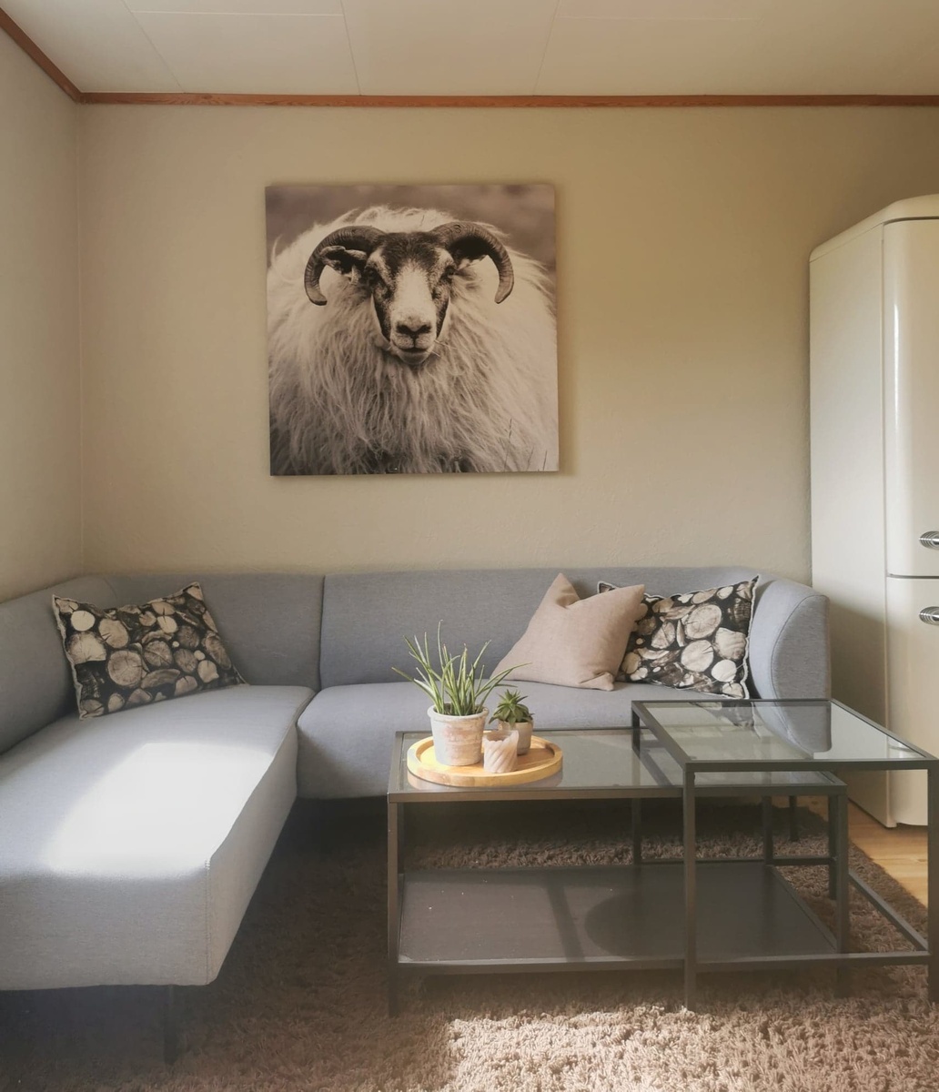 Hyblene og fellesdel er møblert. Utstyr i fellesdel; Oppvaskmaskin, komfyr, 2 x kjøleskap m/fryser, vaskemaskin, støvsuger, varmepumpe og TV. Overmadrass til seng må leietaker ha selv.