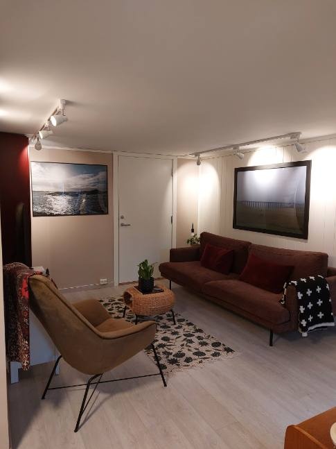 Vi leier ut en kjellerleilighet som ble etablert i august 2021. Leiligheten befinner seg i kjeller med egen inngang. Den har en åpen stue/kjøkken løsning, eget soverom med plass til seng og walk-in garderobe. Leies ut umøblert. Takhøyde på 201 cm i leiligheten.