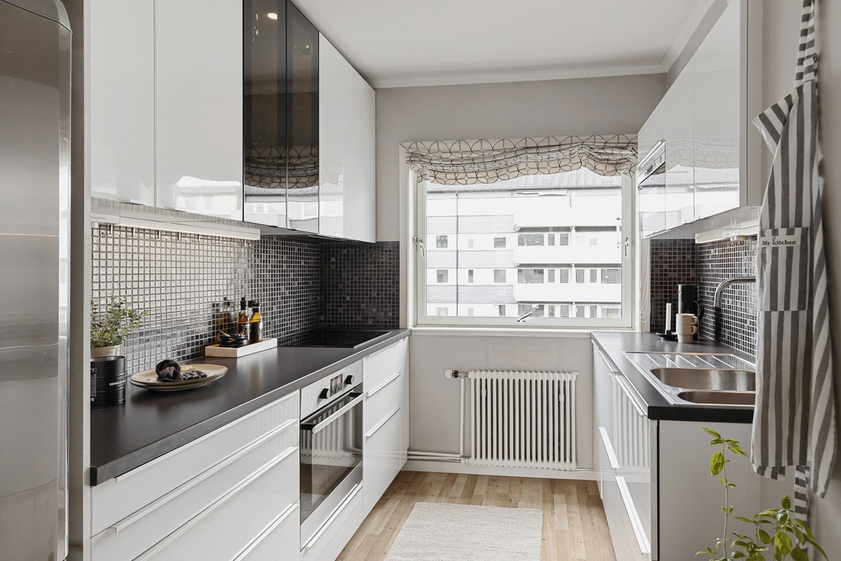 Leiligheten er i 4. etasje (toppetasje) og er av god standard. Både kjøkken og bad er moderne og fint. Det kommer mye lys inn i stua, hvor det også er utgang til en balkong. Der er det utsikt mot Byåsen-marka over fine, gammeldagse "landsbyhus".