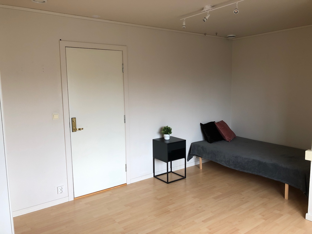Rommet som er ledig er på 15 m2 og har vindu ut mot bakgården. Det leies ut møblert med seng og garderobeskap. Skrivepult kan plasseres om ønskelig.