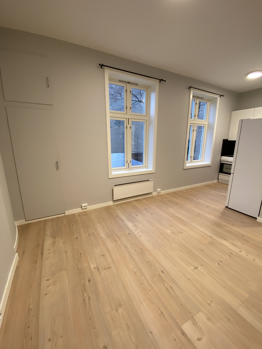 Leiligheten har et stort og lyst rom med og stor kjøkken krok. Kombiskap og stekeovn. God oppbevaringsplass og arbeidsplass på kjøkkenet.