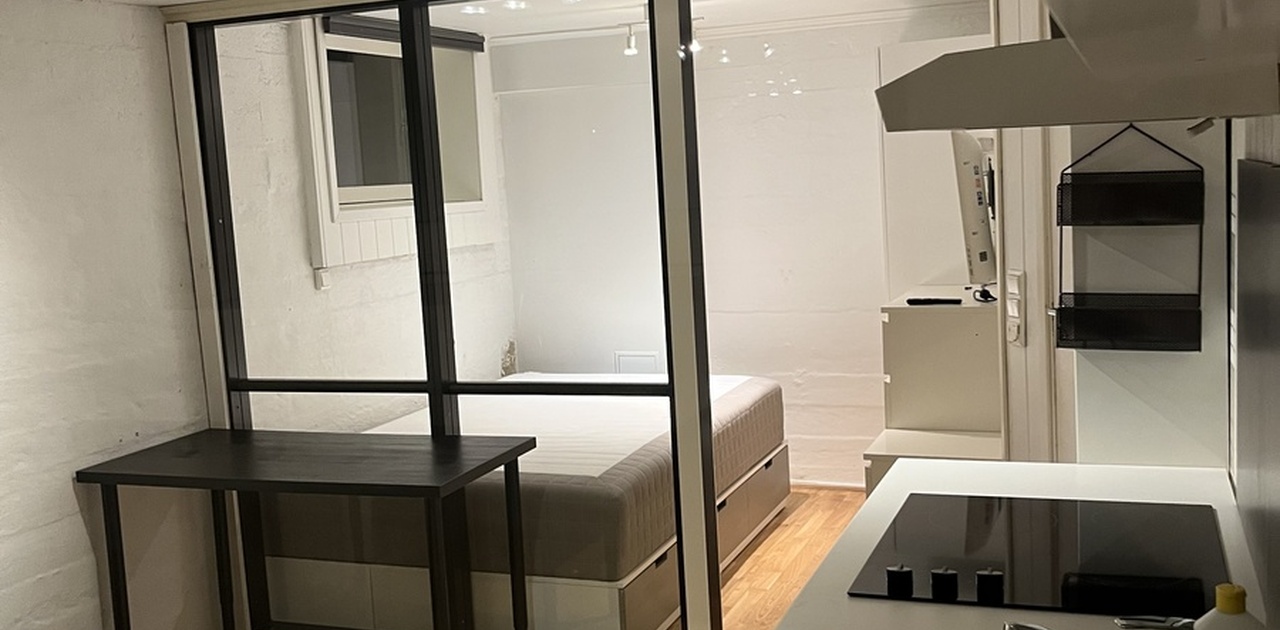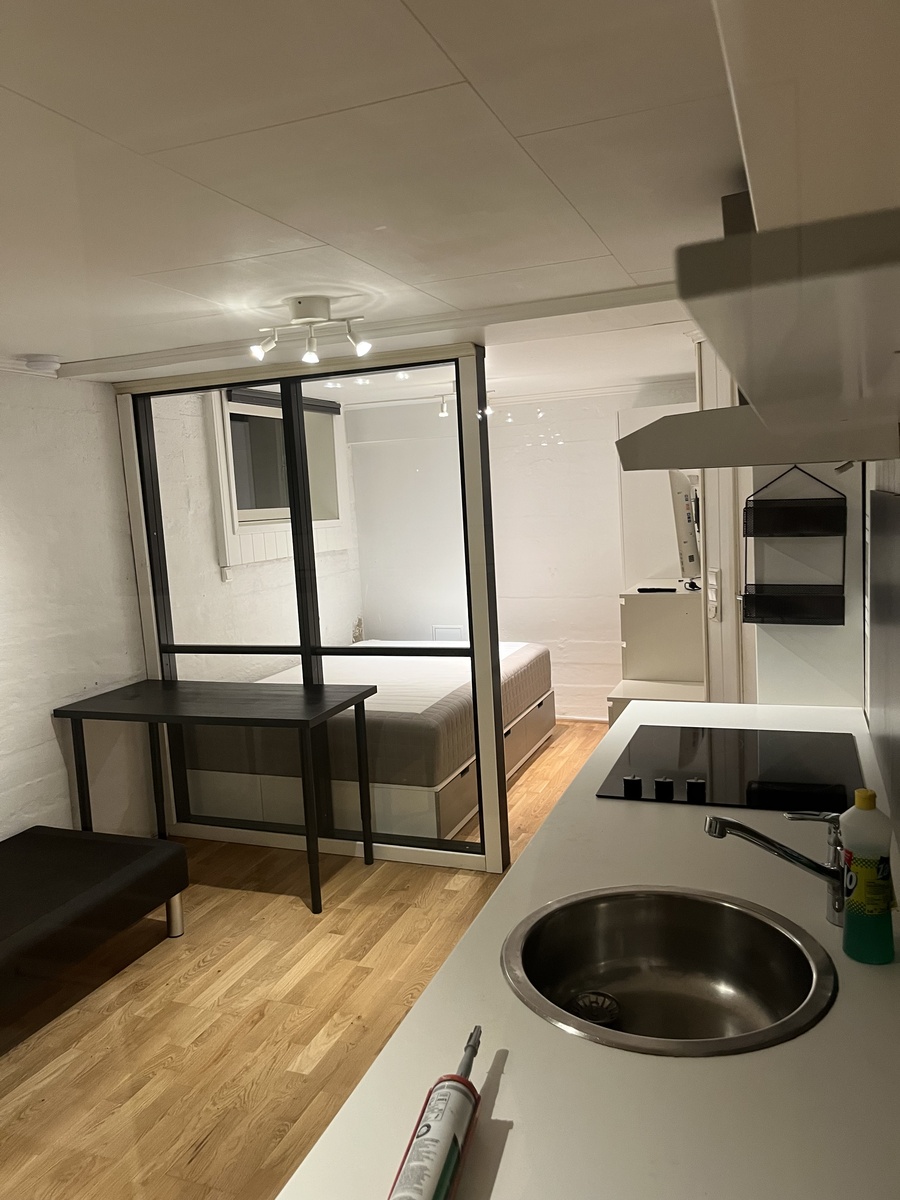Romslig og lys hybel med bad og åpen kjøkkenløsning i kort avstand til sentrum via kollektivtilbud (Østeråsbanen, Holmen t-bane stopp) og dagligvarebutikker. Passer for en person. Vannbåren varme i gulv