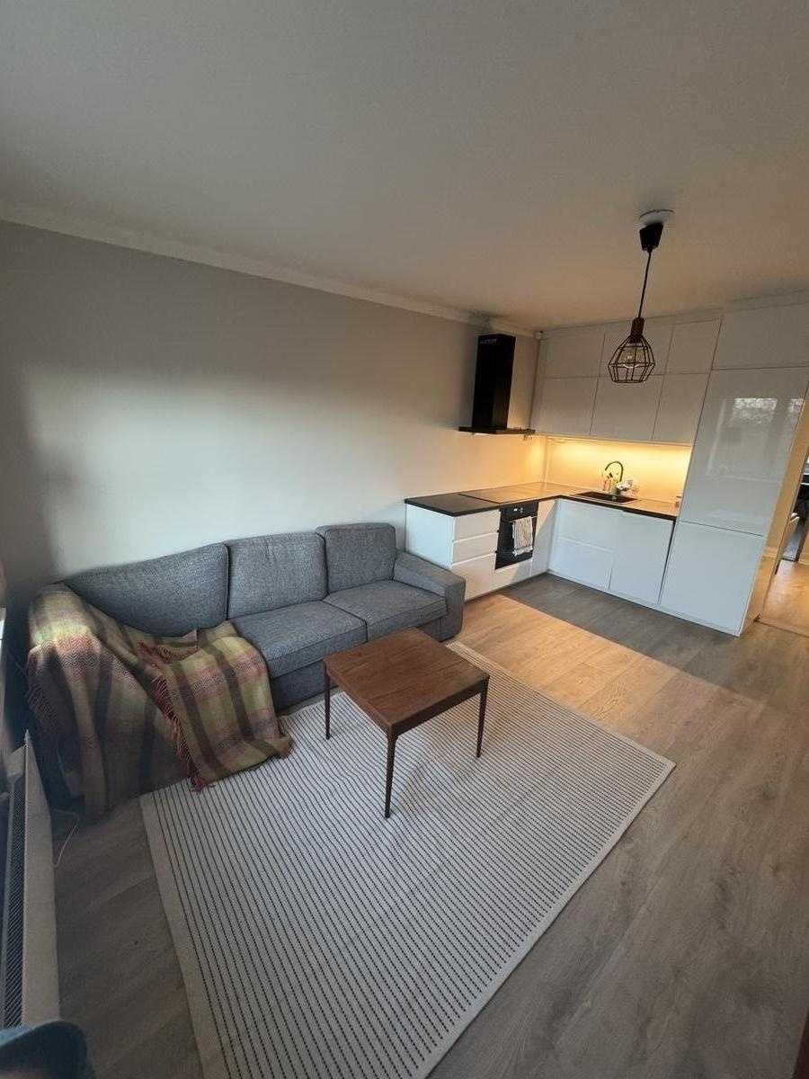 I an renting out the apartment with some furniture. Bed, sofa (split between livingroom and small bedroom in photo) and some kitchen equipment. The sofa and bed should stay but everything else can be removed. In the second bedroom, there is currently an office desk and chair, but a bed or something else can be inserted according to your wishes.