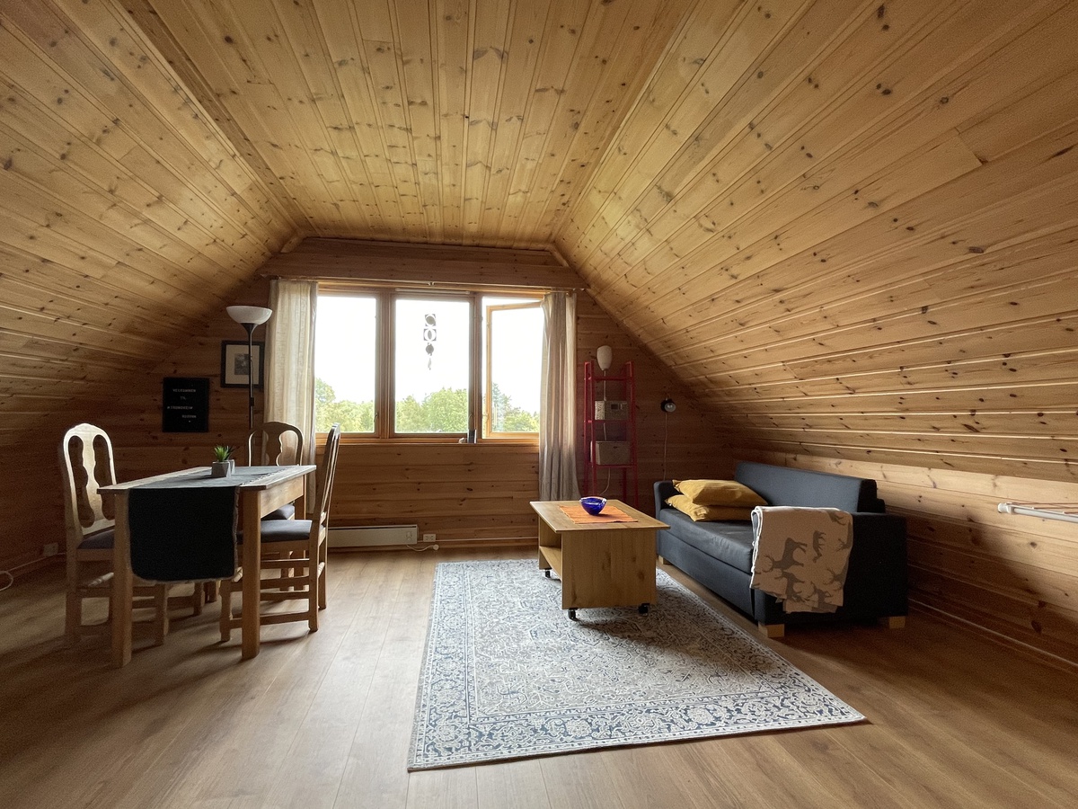 Available from January 2026 (possible to move in last week of December) till summer 2026. Apartment on top of garage: entrance on ground floor, living room with «kitchen corner», bed room and wardrobe/storage room upstairs. Bathroom on ground floor. Furniture: 2 beds, kitchen table with chairs, small sofa bed + table. Not in pictures, but also a black leather armchair with pouf and a TV screen (not smart TV). Fridge, stove, washing machine (clothes). Kitchen is equipped. Tovels and bed linen. Possible to use the landlord’s wifi but no guarantee of good connection (however, works well until now - 200Mb/s). Close to Bymarka (for ski, walks, bike, training). Close to tram to city center (4 minutes walk; tram takes approx 20 minutes to city center), bus to city ca 7 minutes walk from apartment), food stores: 10-15 min walking. No car parking, pets or smoking. Some upgrades done this autumn (not visible in pictures): Shower corner in bathroom, new entrance door.
