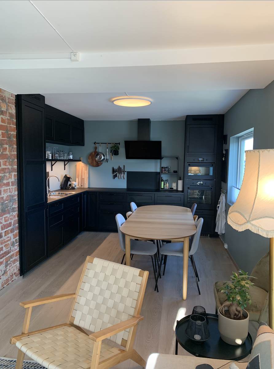 -Leiligheten er ny oppusset fra 2021. Den kommer delvis møblert. Alt av hvitevarer på kjøkken er med. Og kombimaskin på badet.