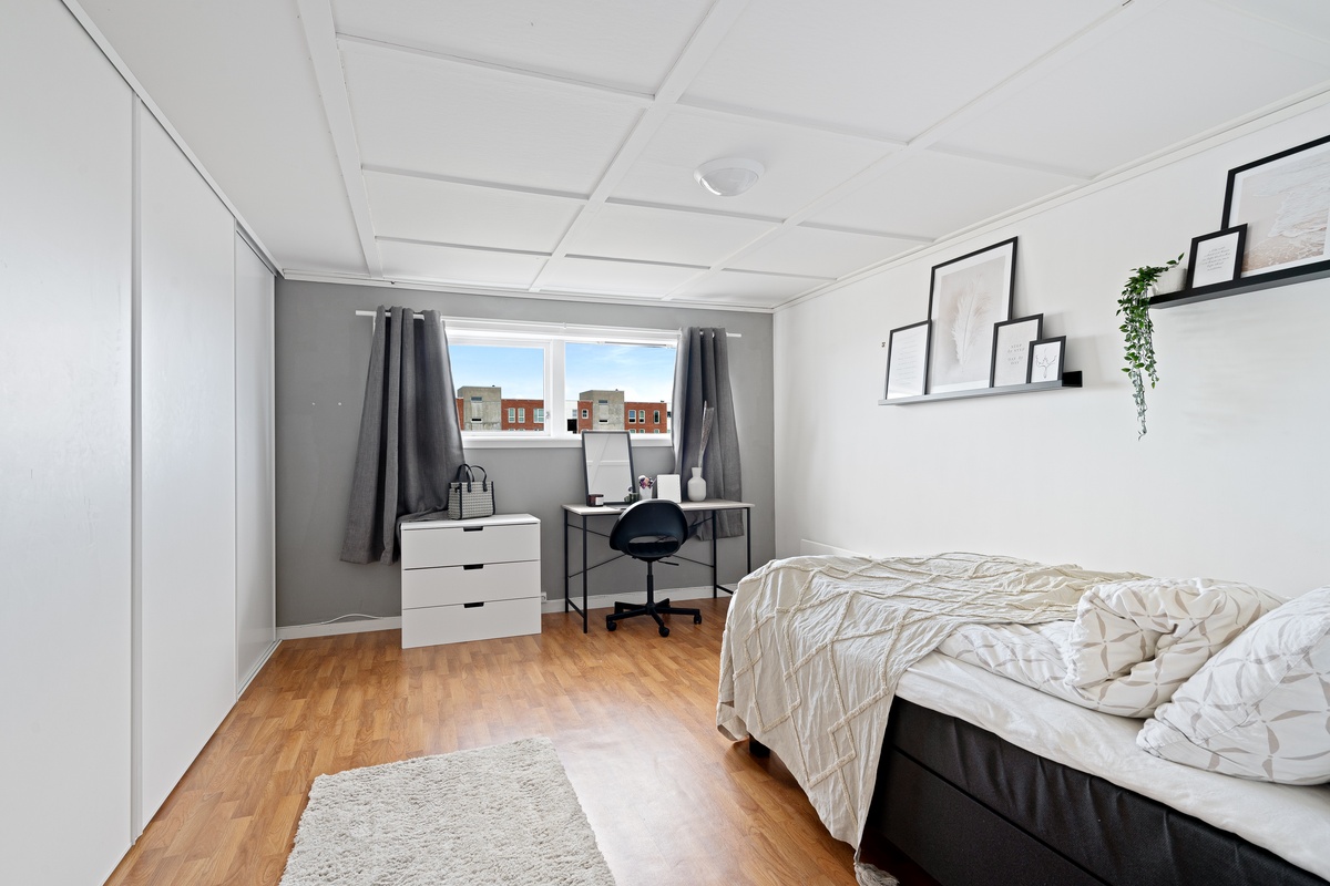 Leiligheten har 3 store soverom, bad, bod, kjøkken og vaskerom.