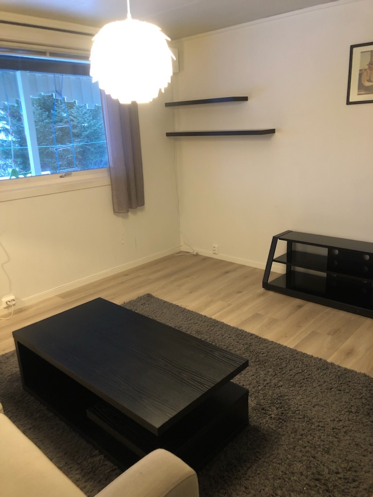 Er møblert, har kjøleskap, komfyr, vaskemaskin, fryseboks og oppvaskmaskin. Gulvvarme i stue/kjøkken og bad. Ikke TV. 40m2 inkl liten innebod og yttergang.